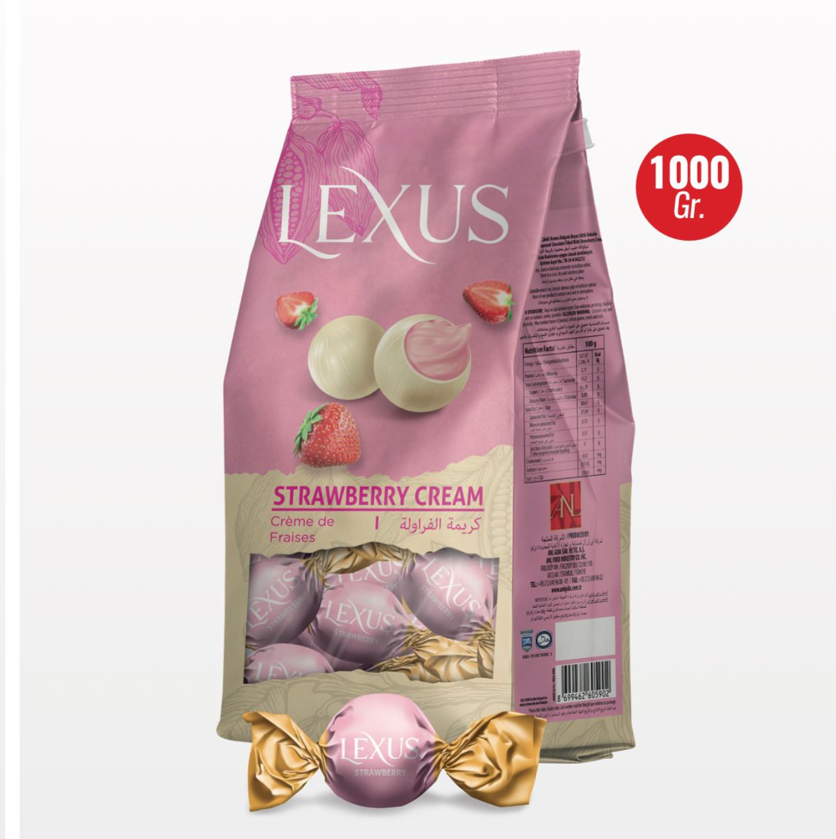 LEXUS ÇİLEKLİ ÇİKOLATA 900 GR (KOLİ İÇİ=8 KG)