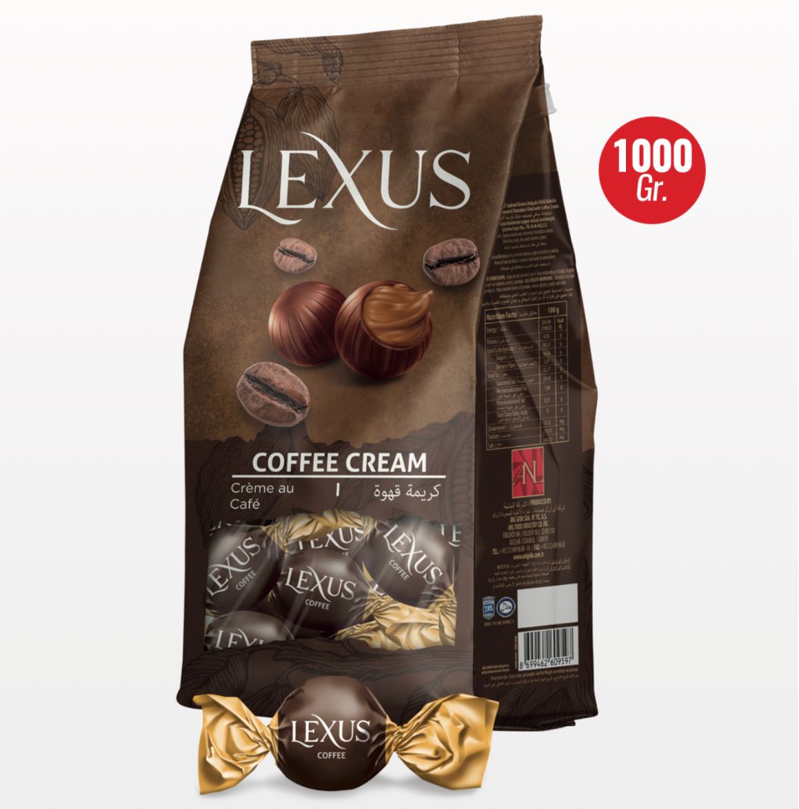 LEXUS KAHVELİ ÇİKOLATA 900 GR (KOLİ İÇİ=8 KG)